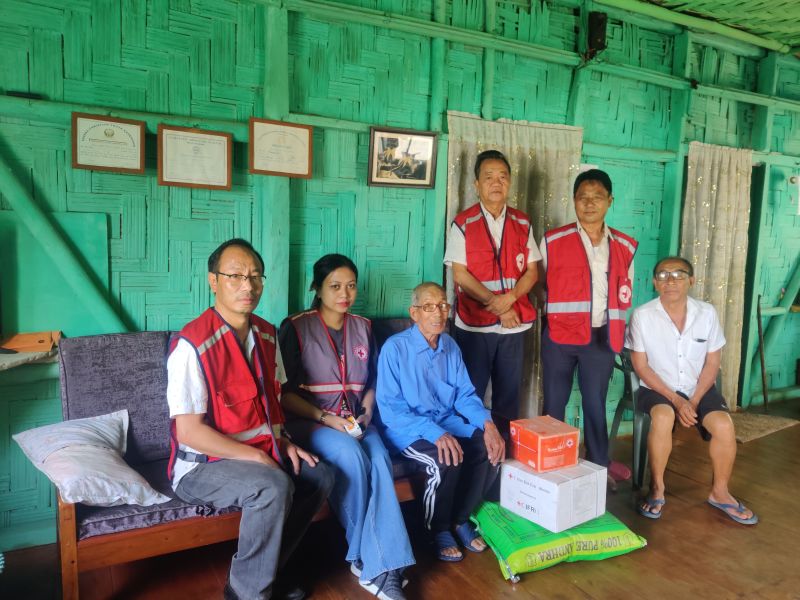 IRCS Mokokchung District Branch Volunteers led by Dr SS Akaba Longchar, Honorary Secretary on visited Khensa Village and visited three families whose houses were completely burned down in a fire accident. The branch gave away kitchen utensil set, hygiene kit and rice to the affected families. (Photo Courtesy: IRCS Mokokchung)