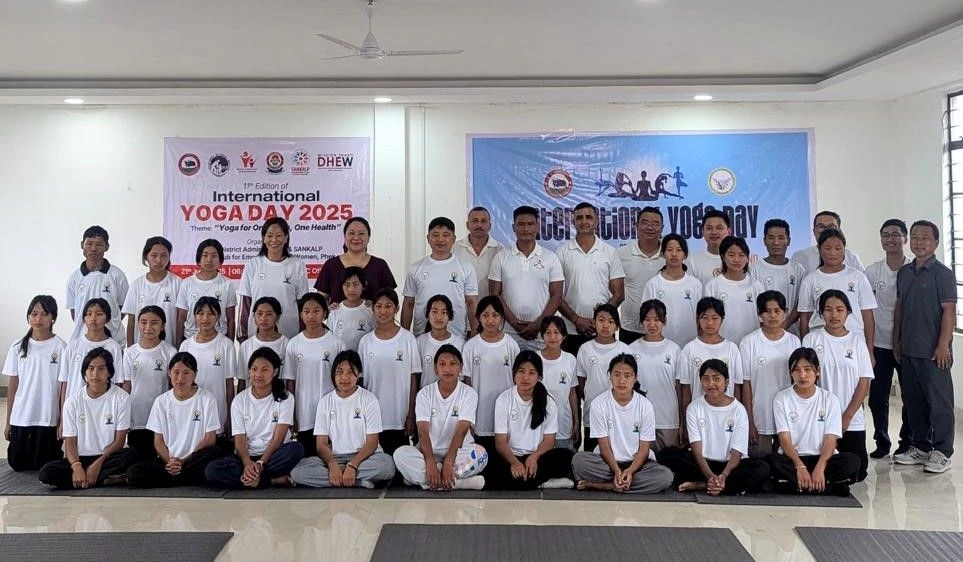 Sao Chang College, in collaboration with the Chang Sports Association, commemorated the 11th International Yoga Day on June 21 at the Loyem Memorial Astro Turf Ground, Tuensang.
