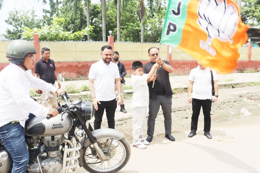 Tovihoto Ayemi, Advisor, Tribal Affairs and Election flagged off the Bike Yatra organised by BJYM Nagaland at Naga Shopping Arcade, Dimapur on Friday morning. The event is being organised to mark the 9th anniversary of BJP’s governance in the country. Flagging off the rally, Tovihoto said the rally aimed at disseminating the information of the various programmes and benefits the BJP has outlined for the welfare of the people of the country. The Yatra team will cover all the constituencies.