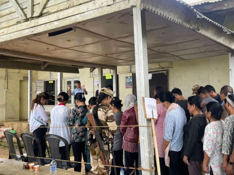 Voters line-up for voting at a polling station in Wokha. According to reports, Wokha district witnessed good turnout of voters at the ULB election held on June 26 with each polling station witnessing high turnouts. (Morung Photo)