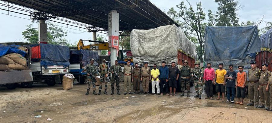 Assam Rifles prevented illegal transportation of approximately 80 tons of Areca Nuts worth Rs 10 crore approx on June 27 from National Highway 29 in Kohima town of Nagaland. The items were being smuggled from Jessami towards Dimapur in two DI vehicles (Pick up vehicles) and 3 Tata trucks. The items were then handed over to Customs Department, Kohima for further legal proceedings. (Photo Courtesy: HQ IGAR(N))