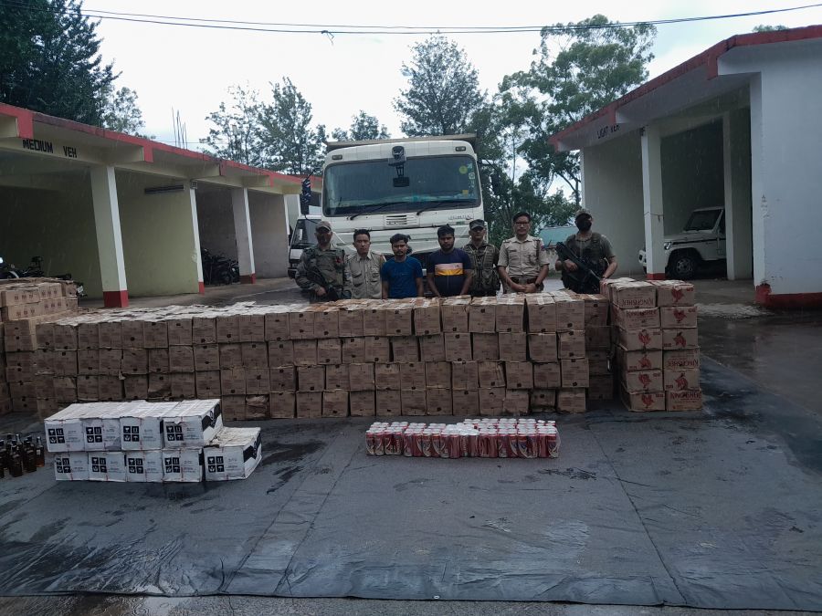 Assam Rifles apprehended two individuals smuggling 14068 bottles of liquor of worth Rs 67 lakh into Mokokchung district of Nagaland on June 28. The illicit liquor was being smuggled in 01 x Tata Dumper. The alleged smugglers along with liquor were caught by Assam Rifles by placing Mobile vehicle check post. (Photo Courtesy: HQ IGAR (N))