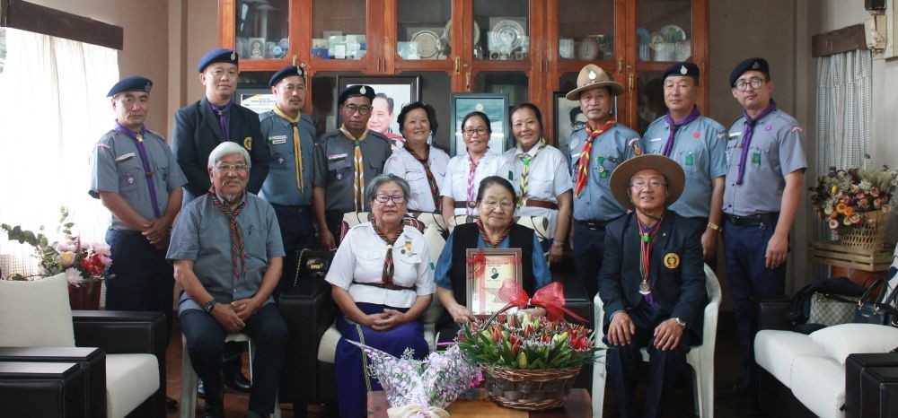The Nagaland Bharat Scouts and Guides (NSBSG) organised a felicitation programme for Sano Vamuzo, a Life Member and Padmashree Award recipient for 2024, at her residence on June 4. NSBSG State Secretary Er Zakie Suohu in his speech congratulated Sano for bringing laurels to her people and association. On behalf of the association and all members worldwide, he wishes her good health and a long life. State Secretary and Dr Nicky Kire, Life Member also spoke at the programme and express his congratulations to her. (Photo Courtesy: NSBSG)