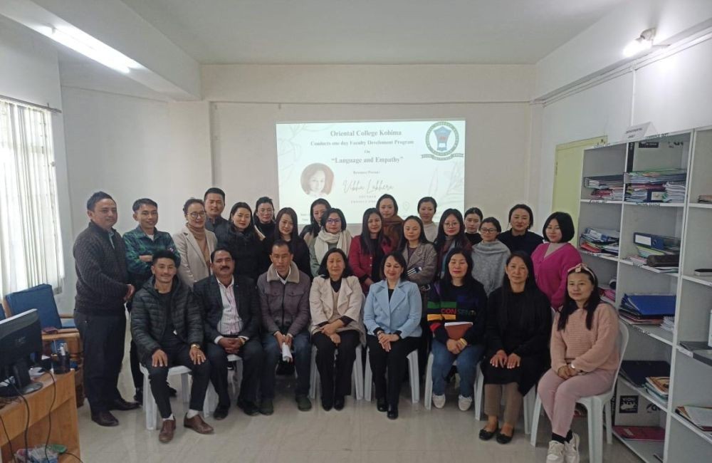 Oriental College, Kohima conducted Faculty Development Programme on “Language and Empathy” on February 28 with Vibha Lakhera, founder of ‘Project Empathy’ as the resource person. In her speech Lakhera defined how empathy can enable one to identify the need of ourselves and others, one can gain tools to communicate more effectively and can find solutions. Empathy can be a stepping stone to tolerance and well- being of any strong community, Lakhesa said.