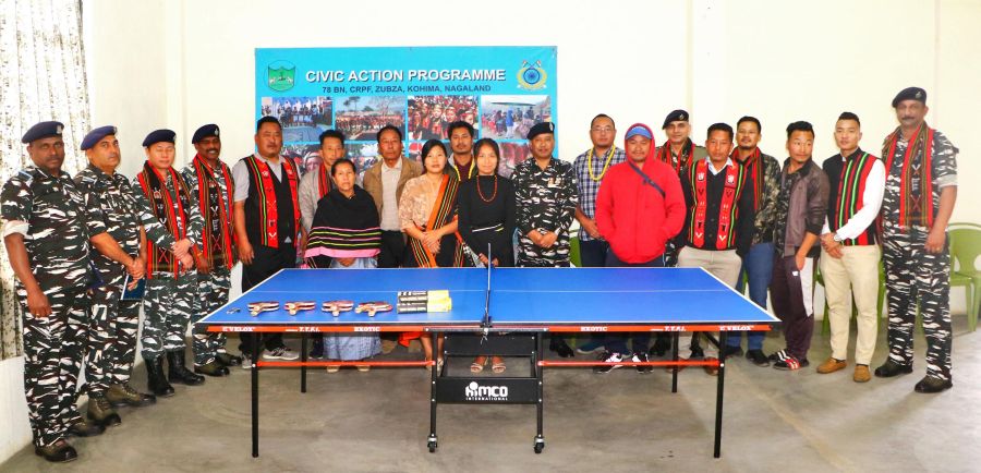 With the aim to encourage games and sports amongst the local youth, 78 Battalion, CRPF, Zubza procured a Table Tennis set including board, bats and balls for the youth of Kiruphema village. The sports items were formally handed over to the Kiruphema Youth Organization in a civic action programme on March 17 in the presence of officers and men of 78 Bn, CRPF, members of Kiruphema Youth Organisation and villagers of Kiruphema. (Photo Courtesy: 78 Bn, CRPF)