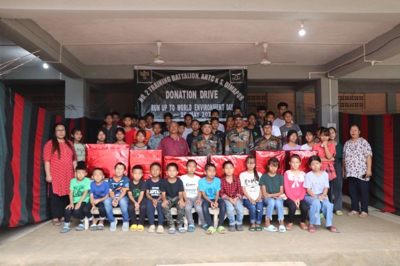 A donation drive was organised by No. 2 Training Battalion, Dimapur under the aegis of Assam Rifles Training Centre and School, Shokhuvi at Nagaland Children’s Home, Dimapur on May 26. Commanding Officer No. 2 Training Battalion visited the Orphanage Home along with his team and presented essential commodities to children. (Photo Courtesy: ARTC&S)