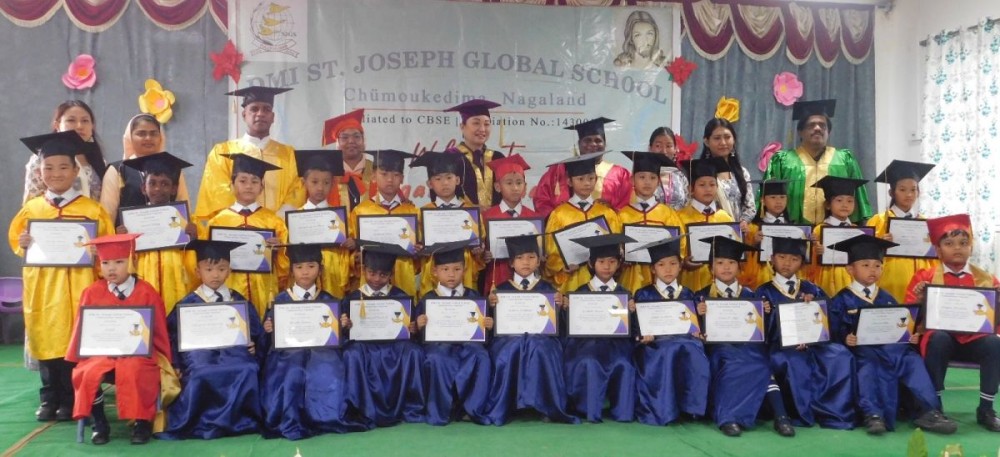 The Kindergarten Graduation Ceremony at DMI St Joseph Global School, Chümoukedima was held with great enthusiasm and joy on April 29, marking a significant milestone in the lives of the little graduates. The event was graced by Temjenkala Aier as chief guest and Rev Sr Dr Mary Jehani as the guest of honour. The event was moderated by Loinoli Yepthomi.