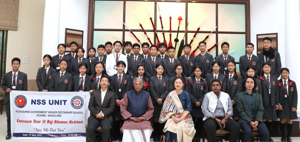 Er Picto Shohe MLA Nagaland with church leaders during the 58th Atoizu Area Church Leaders Fellowship held at Awotsakili Village under Atoizu Sub division on May 8.In order to foster environmental awareness and sustainability, Eco Warriors Nagaland signed a Memorandum of Understanding (MoU) with Unity College, Dimapur on May 8. The MoU was formally signed by Dr Lichumo, Principal of Unity College; Dr Menosenuo Senotsu, Convenor of Eco Club at Unity College; and Lesemew. M, Chairman of Eco Warriors Nagaland. Team member Ningdanglong Longchari was also present during the signing ceremony, symbolizing the shared commitment between the institution and the environmental group. The partnership is expected to lead to a series of green initiatives, workshops, awareness campaigns, and community outreach programs. The NSS Unit of Rüzhükhrie Government Higher Secondary School, Kohima, embarked on an educational tour to Raj Bhavan, Kohima, Nagaland.During the interaction with the Governor of Nagaland, La Ganesan, the students were made aware of the role and responsibilities of the Governor. They were also given the opportunity to ask questions about current affairs and gain insights into the political landscape of Nagaland.The visit to Raj Bhavan provided the students with a firsthand understanding of the administrative processes and protocols associated with the highest office in the state.(Photo Courtesy: PRO, Raj Bhavan)Pranab Vidyapith Higher Secondary School, Dimapur celebrated ‘164th Birth Anniversary of the World-poet Rabindranath Tagore’ and observance of ‘Bengali New Year’ on May 9 at Pranab Jubilee Auditorium. The Principal Monoj Bhattacharjee, in his maiden speech, described the life, career and contributions of the poet-philosopher Rabindranath Tagore. The special guest KK Paul, President of Bengali Samaj, Dimapur presented the autobiography of the world poet. The rank holders and subject State highest achievers of the Vidyapith were felicitated by the Chairman, Principal and other dignitaries presented in the occasion. Words of blessings chanted by Swami Chinmayanandaji Maharaj, chairman of the Vidyapith.