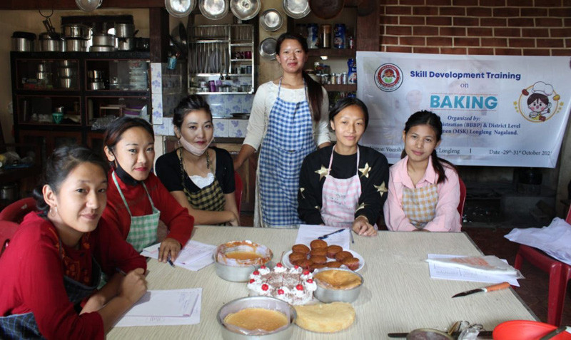 Beti Bachao Beti Padhao (BBBP), District administration & Mahila Shakti Kendra (DLCW) Longleng organized a four-day skill development training on baking for educated and unemployed women. The training was held at Vomshak's Treat Kitchen Longleng from October 28 to 31 with the aim to generate self employment and also to empower the trainees for small enterprises. A total of eight girls from Longleng sardar attended the baking class with trainer, Phenmei Phom. (DIPR Photo)