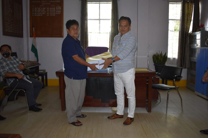 ADC Dimapur, Atokhe Aye handing over the Draft Electoral Roll to one of the political party representative at DCs office Dimapur on November 1. Draft Electoral Roll for all the 5 Assembly Constituencies under Dimapur district has been prepared in accordance with the Registration of Electors Rules, 1960, where copies are available for inspection in the office of DC Dimapur during office hours. (DIPR Photo)