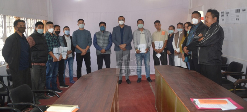 DC & DEO Longleng, M Shayung Phom handed over the draft electoral roll for special summary revision 2022, to the political parties of 49 A/C and 50 A/C Longleng on November 1 at his office in presence of ADC & ERO, D Robin and AEO & AERO, Phachulo. (DIPR Photo)