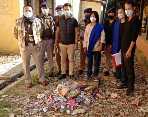 An enforcement activity was carried out by the DTCC tobacco control unit Mokokchung under National Tobacco Control programme (NTCP) along with law enforcers from Police Station-1 Mokokchung, representatives from Watsü Mungdang and Ao Students’ Conference (AKM) on November 24. A press release from the Office of the Chief Medical Officers Office stated that tobacco products were seized from shops near educational institutions and were penalised under section 6(b) of COPTA Act 2003. (Photo Courtesy: CMO office Mokokchung)