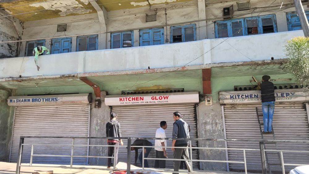Traders whitewash and decorate commercial establishments in Kohima in view of forthcoming festive season of Hornbill Festival and Christmas. Earlier, the Kohima Chamber of Commerce & Industries called upon its members to decorate their respective shops. Kohima Municipal Council has also directed all the shopkeepers and business establishments within KMC jurisdiction to clean, whitewash, paint their shops facing the road and put up proper lighting. (Morung Photo)