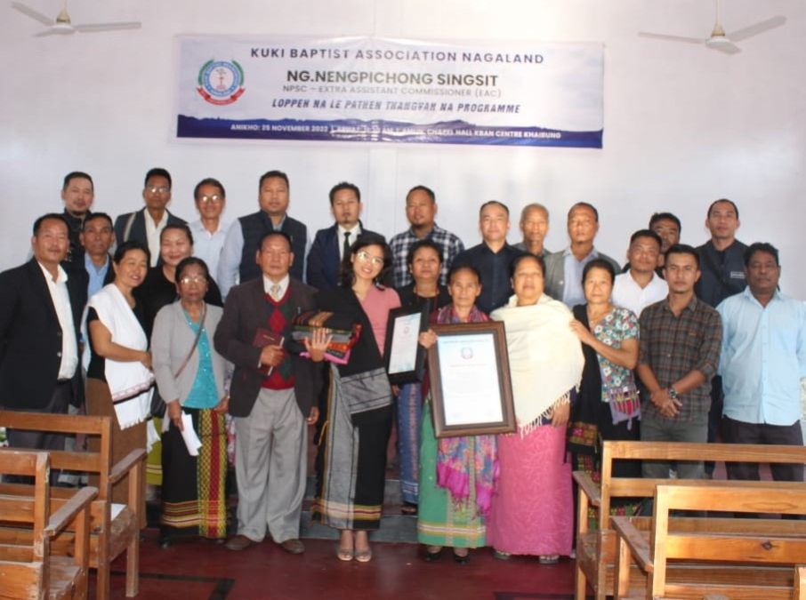 The Kuki Baptist Association Nagaland (KBAN) has honoured Nengpichong Singsit, for her success in the recently declared NPSC examination, during a programme at the KBAN Mission Centre, Khaibung on November 25. Singsit shared her experience in the run up to the exams and attributed hardwork, good preparation, parent’s support, and prayers for her success. (Photo Courtesy: KBAN)