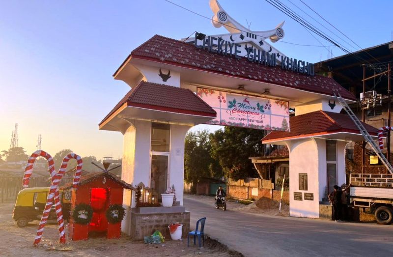 Christmas decorations at Chekiye village gate near 4th Mile, Chümoukedima on November 26. (Morung Photo)