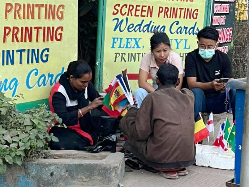 A man is seen selling flags of countries participating in the Qatar World Cup 2022 at Nagarjan Junction, Dimapur on November 26. (Morung Photo)