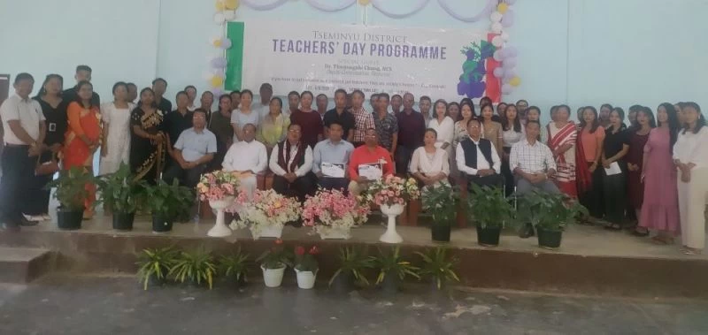Longleng District paid heartfelt tribute to the educators at an event organized by District Education Office (DEO) at the DEO Conference Hall Longleng on September 5. Dr Samuel Akho Konyak P, Extra Assistant Commissioner of Longleng graced the occasion. District Awards were presented to four outstanding Teachers- Nirmal Sarkar, (Mathematics) from Bautung Govt Higher Sec School; Ngongang Phom, Assistant Teacher at Phom Lempong Higher Sec School; C Pangjei Keikung, from GT Govt Higher School Yachem and W Salang Phom, Hindi Teacher at Govt Higher School Yaongyimchen.The Government Higher Secondary School (GHSS) in Phek marked Teacher’s Day with a celebratory program held at the School Auditorium on September 5, 2023. (DIPR Photo)The District Education Office in Wokha celebrated Teacher’s Day celebration on September 5 at the VDB Hall, Wokha with SDO (C) Tsidi as the special guest. On the occasion, four exceptional teachers (two from private schools and two from government schools) were honored for their outstanding service- K. Yanpemo Odyuo from GHS Sungro, T. Merio Ezung from GHS Longsa, Wonchano Khuvung from Fernbrook School and Arhoni Ovung from Mt. Sinai School. (DIPR Photo)The management of St Joseph University organized Teacher’s Day at St Joseph Auditorium on September 5. The program was organized to appreciate and felicitate the faculty members for their hard work and dedication striving towards achieving the vision and mission of St Joseph University. Vice Chancellor Dr D. Gnanadurai exhorted the teachers to continue to contribute towards educating and moulding the students and rendering their relentless service towards society and nation building.Government Higher Secondary School, Ahthibung Town under Peren District celebrated Teacher’s Day on September 5 with SDEO (retd), L. Gangte as the special guest. On the occasion, the teachers were felicitated by the students. Other highlights of the programme includedpresentations of songs and dances by the students. (DIPR Photo)Zunheboto district celebrated Teacher’s Day on September 5 at Zunheboto town hall with Zunheboto Deputy Commissioner Rahul Bhanudas Mali as guests speaker. (DIPR Photo)Along with the rest of the nation, the Phek Battalion of Assam Rifles observed Teacher’s Day in honour of the Teachers at Ziphu and Avangkhu on the occasion of Teachers Day September 5 under the theme, “Empowering the Future, One Lesson at a Time.” The day celebration featured Teacher Appreciation Awards, where educators from ARPS, Govt Middle school, Ziphu and Govt Public School, Avangkhu were recognized for their exceptional contributions to education. The 2nd Common Teacher’s Day celebration for Chümoukedima District was held at the Chümoukedima Town Council Hall on September 5. The event was graced by the presence of ADC Medziphema, P. James Swu as guest of honour who also presented the State Teachers’ Award to two deserving teachers- Enzenbeni Lotha from GHS Diphupar-B and L. Hangsing Kuki from GHS Medziphema. (DIPR Photo)The Tseminyu district Teacher’s Day was celebrated on September 5 at Tseminyu Town Hall with Dr. Tinojongshi Chang, NCS Deputy Commissioner Tseminyu as the special guest. (DIPR Photo)In order to express gratitude and honour the teachers for impacting and transforming lives, Baptist High, Kohima celebrated its School Level Teacher’s Day on September 4 with R. Nsarangbe, Secretary, Nagaland Board of School Education (NBSE) as the guest speaker. A special prayer for the teachers was pronounced by Rev. Dr. Rachülie Vihienuo, Executive Director, ABCC. Speech on behalf of teachers was delivered by Rokothono Kintso and on behalf of students by Yayem Rooney HK. Gorkhas of Chümoukedima celebrated its first Teacher’s Day at Little Hut Conference Hall, Chümoukedima Town. The programme was organised by Gorkha Students’ Union Chümoukedima District. Highlights of the programme include felicitation program to longest serving Gorkha teacher in Chümoukedima District-Konala Rana, Assistant Teacher, North Town Hr. Sec. School, Chümoukedima.Chairman, College Governing Body of Capital College of Higher Education, Kohima Vezuhu Keyho addressing the Teacher’s Day celebration organized by the Students’ Council at Sahitya Sabha Hall, Kohima. Dr. Zokho Venuh, Principal CCHE awarded the best teacher award to Opangmenla Jamir for the academic year 2022-2023.Students of Balijan English school poses for lens on cultural item on the occasion of Teacher’s day celebration here at Balijan English school, Karbi Anglong district of Assam on September 5. Earlier program began with the welcome speech addressed by RS Pandey, Head master of school. Other highlights of the program were Krishna Radha act, group song, group dance, special number, jhummar dance and patriotic dance.Pranab Vidyapith Higher Secondary School, Dimapur Teacher’s Day celebration was observed at its school auditorium on September 5. Srimat Swami Subhanandaji Maharaj, I/c Secretary, Suri Bharat Sevashram Sangha and Member of BSS, Governing Body Kolkata was the guest of honour.Niuland District Common Teacher’s Day celebration was observed on the September 5 jointly organised by SDEO Niuland and Niuland Area Students Union (NASU) at Government Higher Secondary School with Sara S. Jamir, NCS Deputy Commissioner, Niuland as the special guest. District Teacher’s Award was given to Sademkokba, PGT, GHSS Niuland and Likivi Zhimomi, Asst. Teacher, Modern School Niuland.