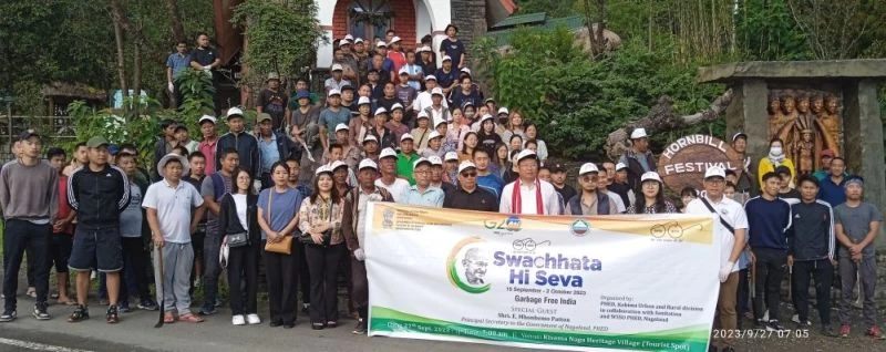 A mass cleaning of the landmark tourist site of the state was conducted jointly by Kohima Rural division and Urban division PHED and in collaboration with Sanitation and WSSO, PHED on September 27 at Naga Heritage Village, Kisama. The cleanliness drive was attended by Phesama Village Council, WATSAN Committee Phesama, Phesama Youth Organisation, Phesama Students Union along with various concerned citizens. This cleanliness drive was conducted to commemorate the National Campaign Swachhta Hi Seva on the theme ‘Garbage free India.’ The event was attended by E. Mhonbemo Patton, Principal Secretary PHED and Er. Repang Longkumer, Chief Engineer (HOD) PHED along with various departmental officials. A programme for recognition of Sanitation Workers (Safai Mitra) was held at the Directorate of Public Health Engineering Department, Kohima on September 29. This programme was held in commemoration of Swachhta Hi Seva – a national campaign under the theme ‘Garbage Free India.’ During the programme, six dedicated and sincere sanitation workers (Safai Mitra) were awarded with incentives and citations by Er N Thsathrichem Sangtam, Chief Engineer, Sanitation & WSSO PHED. This was stated by Thepfulie, State IEC Consultant, Sanitation & WSSO, PHED, Nagaland.As part of its Youth and Civil Society Organizations’ Campaign 2023 activities, AIDA-Child Friendly Dimapur organised a street play at Sovima junction in collaboration with Tetso College on September 29. During the event, around 12 students from Social Work Department, Tetso College enacted a play to create awareness on the rights of the children with special emphasis on Article 24 of the Convention on the Rights of the Child. Sazolie College celebrated its 16th annual cultural day at Vinizono hall on September 27. The event featured display of traditional attire. A highlight of the event was the cultural show competition of different tribes and cultural groups, including Chakhesang, Lotha, Sumi, Angami and Zeliangrong, Gorkha, United Cultural Troupe, Eastern Nagas, and Ao. In the competition, winners emerged in four categories. The Eastern Nagas won in drama and games categories, Gorkha secured the title in the dance category, while Angami and Zeliangrong claimed the position in the song category.A team of 10 students from St Joseph University, Nagaland led by Dr Moameren Pongen, Assistant Professor attended the G20 University Connect Finale programme at Bharat MandapamIn New Delhi. The G20 University Connect Engaging Young Minds was an initiative undertaken by the Ministry of External Affairs Government of India in collaboration with the Research and Information System for Developing Countries (RIS) to build the understanding of India's G20 Presidency among India's Youth and enhance their participation in different G20 event. Under the initiative, St Joseph University, Nagaland, was one of the Universities selected to organise a lecture series on April 20.