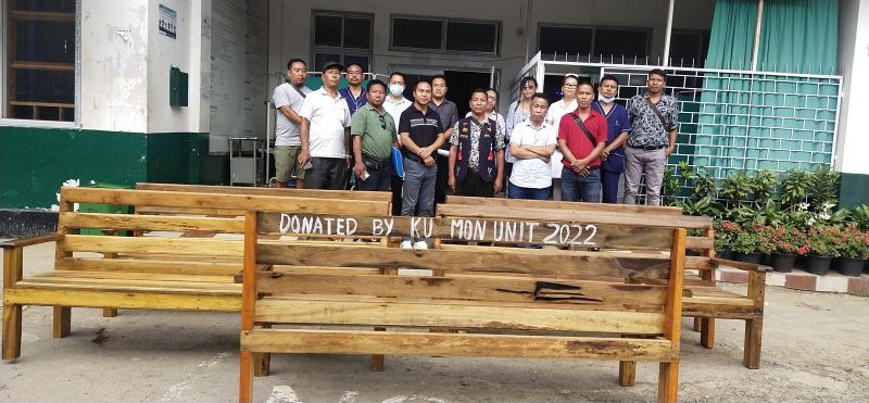 Konyak Union Mon Unit donated arm bench to Mon Civil Hospital on September 14, as assured during joint coordination meeting held on August 25 to donate as a free well for OPD ward for the welfare of the public in Mon. (Photo Courtesy: KU Mon Unit)