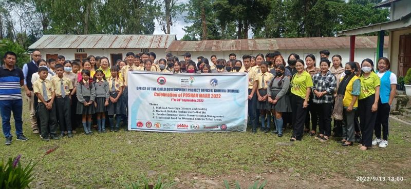 As part of the Poshan Maah celebration, Chiephobozou ICDS Project in convergence with H&FW and DoSE organised an awareness camp for adolescent girls & women on menstrual hygiene and anemia screening camp at DBs Court, Chiephobozou on September 13. Dr Akatoli Angto, MO CHC Chiephobozou was the resource person. Vitoka Yepthomi, EAC Chiephobozou delivered a keynote address. The medical team conducted the rapid strip-based hemoglobin test. Altogether 78 people were screened and 44 of them were found anemic. IFA tablets were distributed to them with the advice to visit CHC for review after three months. Sanitary pads were also distributed to all the participants. A total of 58 Adolescent girls from Govt Hr Sec School, Chiechama and GHS Nehre Model took part in the programme.