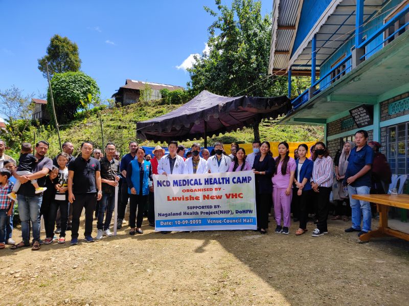DPO NCD, Dr Mhonchan along with participants at the NCD health camp conducted by VHC Luvishe New under NHP at Luvishe New village Aghunato block Zunheboto on September 10. (Photo Courtesy: DPMU NHP Wokha)
