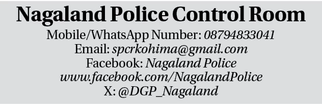 The Police Control Room can be reached at the following:Mobile/WhatsApp Number: 08794833041; Email: spcrkohima@gmail.com; Facebook: www.facebook.com/NagalandPolice ; X (formerly Twitter): @DGP_Nagaland