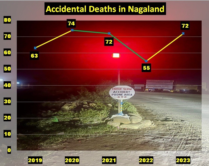 Accidental deaths in Nagaland surged by 30.9% in 2023, with road mishaps emerging as the leading cause, according to the latest ‘Accidental Deaths and Suicides in India 2023’ report released by the National Crime Records Bureau (NCRB).