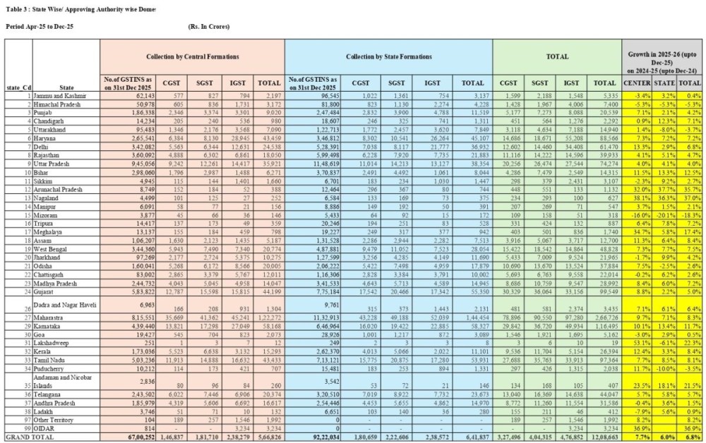 The surge comes despite the reduction of GST rates on over 375 goods and services as part of the GST 2.0 reforms implemented in September 2025, “rising consumption appears to have led to a boost in tax collection.”