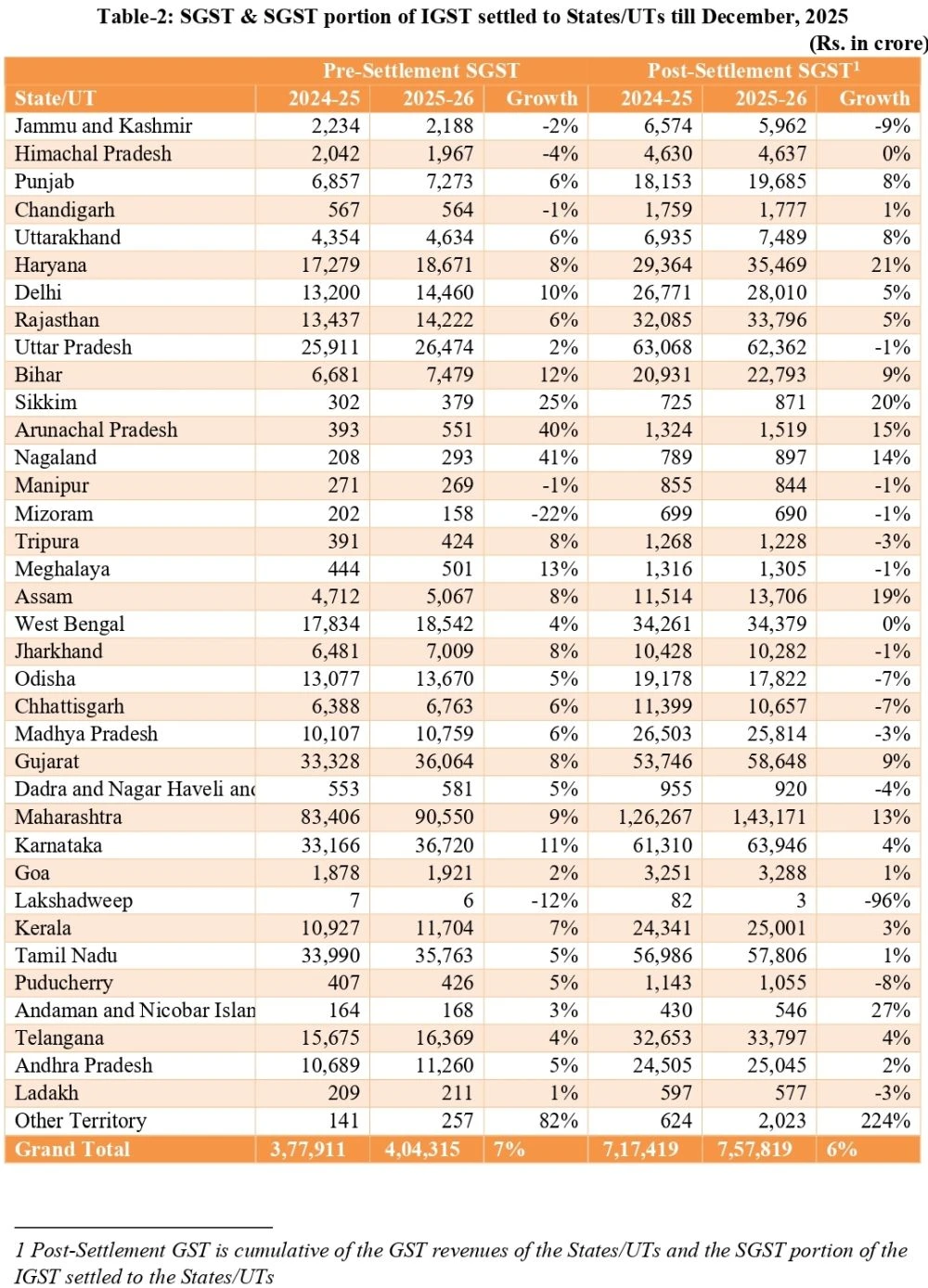 Growth much higher than all-India average GST revenue growth of 6.8% for the same period