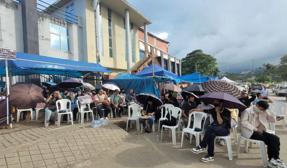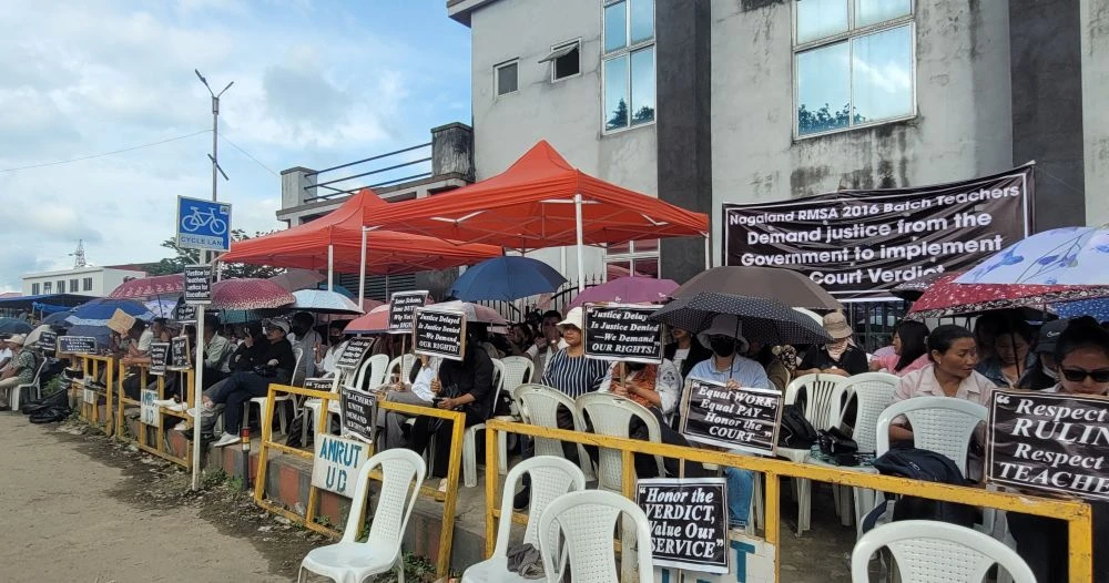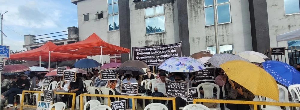 RMSA Teachers sit-in protest outside the Nagaland Civil Secretariat on September 11. (Morung Photo)