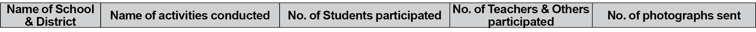 Schools should submit compliance Report in the following format along with 2 or 3 nos. of good quality photographs to the respective DEOs through email before 4:00 pm of the same day (November 26).