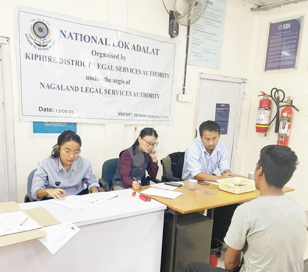The Phek DLSA organised its sitting at the District Court Complex, presided by District & Sessions Judge cum Chairperson, Duvelu Vero, with Retainer Lawyer Sekhotso Rokha, Chief LADC Vethothi Vero, and Deputy LADC Keneinuo Swuro as conciliators. A total of 59 pre-litigation bank recovery cases from SBI, Canara Bank and Co-operative Banks at Phek, Pfutsero, Chozuba, and Chizami were disposed of, resulting in a settlement of Rs 33, 09,556. At Kiphire, the DLSA held it’s Lok Adalat at SBI Pungro Branch, presided by Chief Judicial Magistrate-cum-Secretary, Holika Sukhalu. Out of 29 bank loan cases, 25 were resolved, with a settlement of Rs 42, 75,700. The proceedings were conducted in a cordial and conciliatory manner with cooperation from bank officials, litigants, and conciliators.