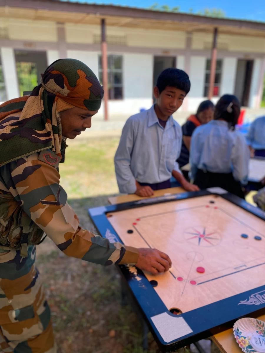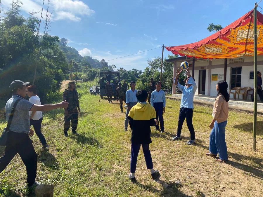 Assam Rifles distributed sports equipment to students of Government School at New Ralan, Wokha in the presence of the Village Chairman, New Rala, Wokha on November 15. Sports equipment such as footballs, volleyballs, table tennis board & paddles, badminton nets and shuttles, carrom boards, javelins and skipping ropes, etc. were distributed. Students, teachers and leaders of the village also had a football exhibition match.