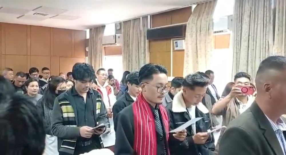 Gathering takes NVD Pledge during the state level celebration of 16th National Voters’ Day 2026 in Kohima on January 25. Morung Photo