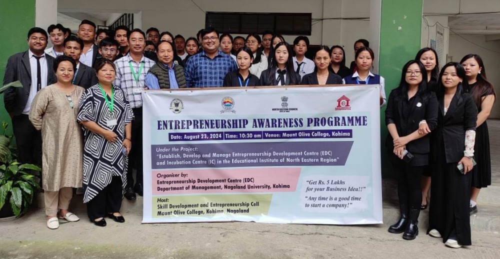 Kohima, August 23 (MExN): Nagaland University initiated an Entrepreneurship Awareness Programme (EAP) at Mount Olive College, Kohima, aimed at fostering entrepreneurial skills among youth aged 18 to 40 in the district.