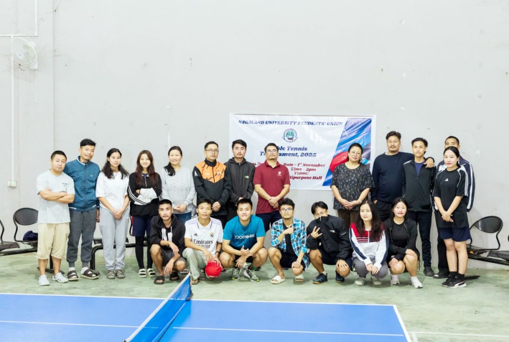 Nagaland University Students’ Union Lumami (NUSU-L) successfully organised a Table Tennis (TT) Championship on November 1 at the Lumami campus, marking the first occasion where students, faculty, and staff competed together. The event, held at the Multi-Purpose Hall, aimed to promote Table Tennis and foster sporting spirit on campus.