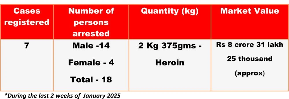 Meanwhile, at the press conference, the Nagaland Police informed that drugs worth over Rs8.31 crore were seized during the last two weeks of January 2025. The seizure totaled 2.375 kg of heroin. In this connection, 18 people (14 males and 4 females) were arrested. A total of 7 cases – 3 in Dimapur and 4 in Kohima – were registered under the Narcotic Drugs and Psychotropic Substances Act.