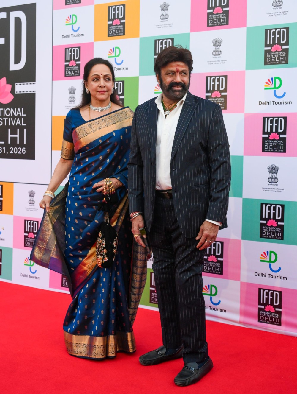 New Delhi: Actors Hema Malini and Nandamuri Balakrishna during the International Film Festival Delhi, at Bharat Mandapam in New Delhi on Wednesday, March 25, 2026. (Photo: IANS/Deepak Kumar)