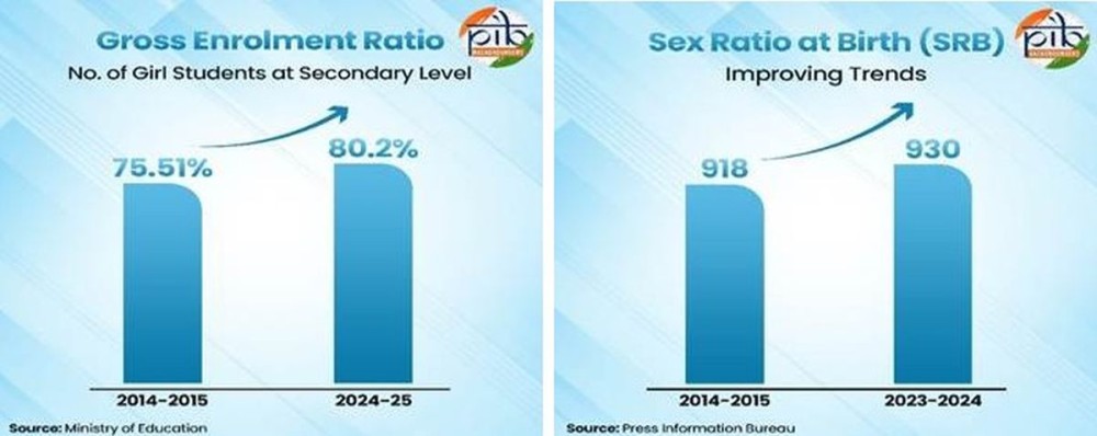 Furthermore, the Gross Enrolment Ratio (GER) for girls at the secondary level reached 80.2 per cent in 2024-25.