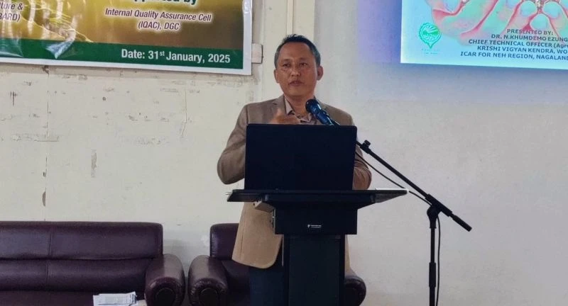 In the second technical session, chaired by Sedevino, Associate Professor and Head of the Department of Political Science, DGC, Dr. N. Khumdemo Ezung, Chief Technical Officer at KVK Wokha, discussed Organic Farming for Sustainable Agricultural Development and Food Security.