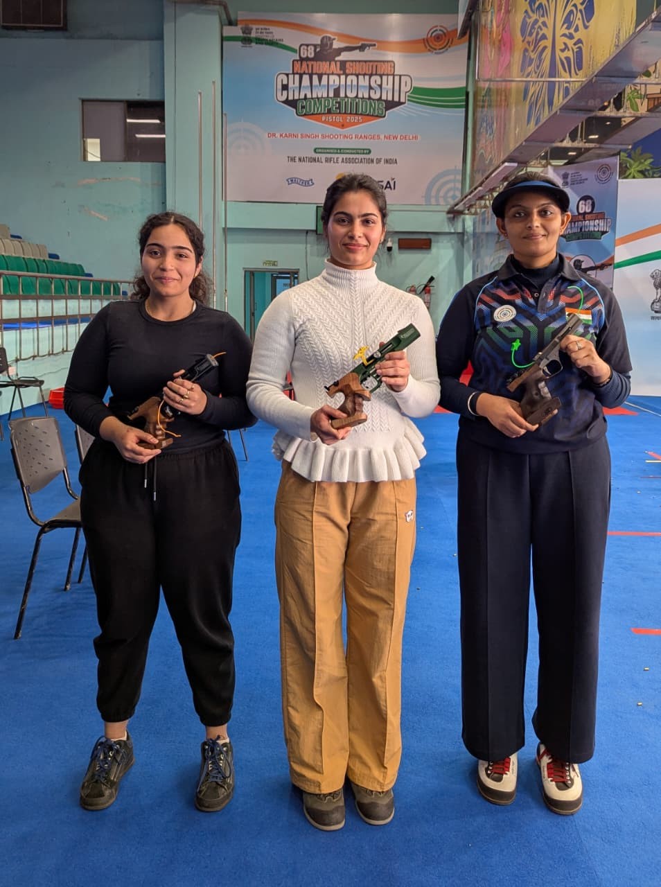 Tilottama Sen sweeps women’s 3P as Manu Bhaker, Aishwary Pratap Singh Tomar also post wins in the National Selection Trials for Group A shooters at the Dr. Karni Singh Shooting Range near New Delhi on Wednesday. Photo credit: NRAI