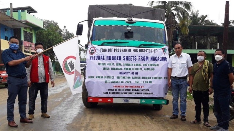 Wokha, August 16 (MExN): Land Resources Department, Wokha, held a flag-off programme for dispatch of natural rubber sheets from Nagaland at Merapani, (Marachu Yan) Wokha district, on August 16 with Additional Deputy Commissioner Bhandari, Tiameren Chang, NCS as the special guest.