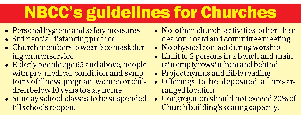 Following Nagaland government’s decision to allow religious places to open, Nagaland Baptist Church Council (NBCC) General Secretary, Rev Dr Zelhou Keyho today stated Churches should put in place plans to reopen with proper education and information.