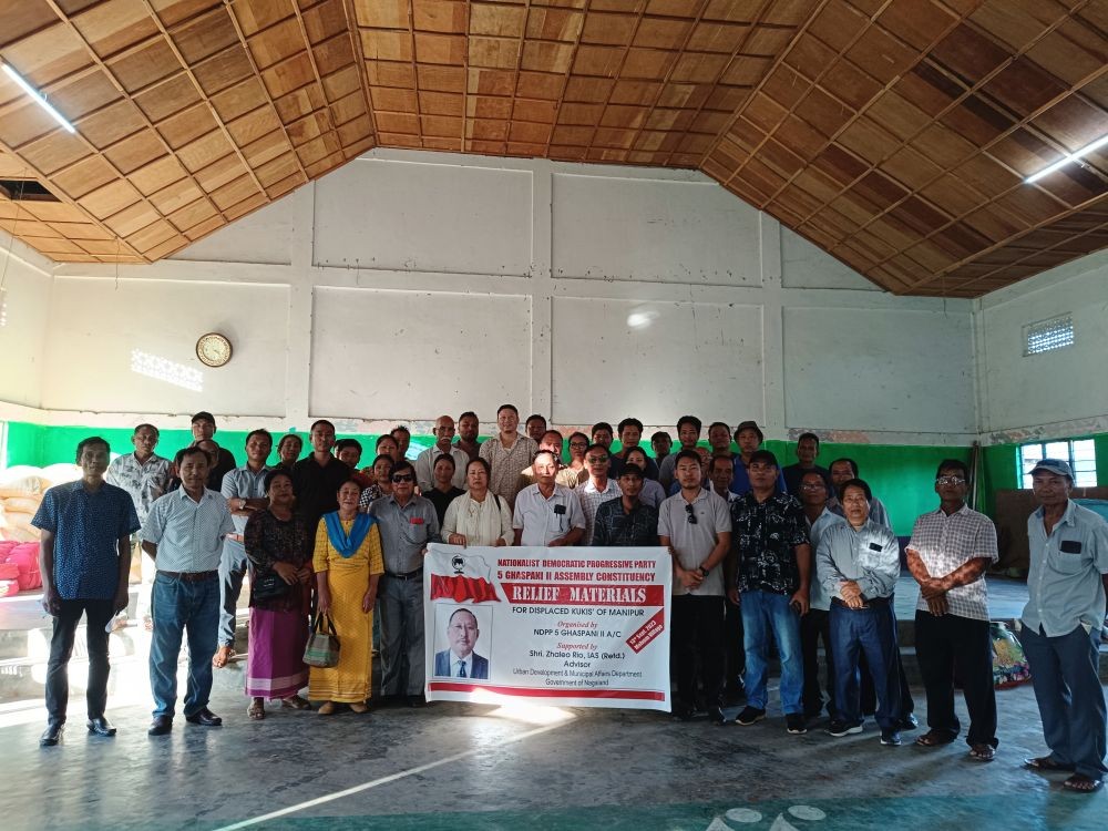 DIMAPUR, SEPTEMBER 14 (MExN): The NDPP 5 Ghaspani-II A/C distributed relief materials to displaced Kukis from Manipur on September 13 at Molvom Community Hall.