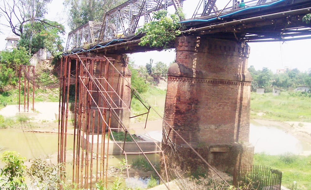 The incomplete new Dhansiri Bridge (near Old Dhansiri Bridge), at Purana Bazar in Dimapur.