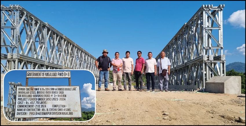 NFHRCC inspection team with PWD (Roads & Bridges) engineers on the modular galvanised steel 2-lane bridge over the Dadi River, which falls on the Niuland segment of the Nagaland Foothills Road on November 22. (Morung Photo)
