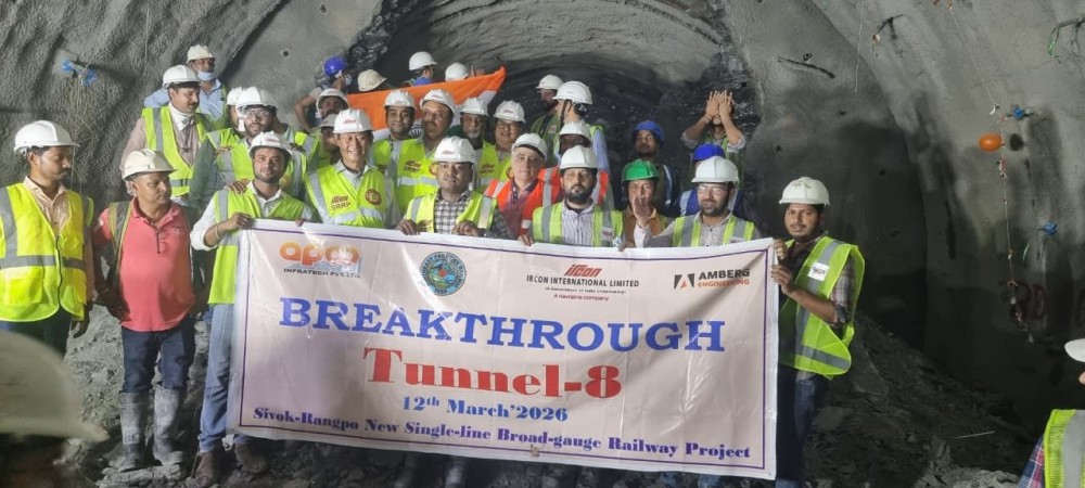 With the completion of mining in Tunnel No. 8, tunnel excavation has now been completed in 13 out of the total 14 tunnels planned under the Sivok–Rangpo Railway Project.