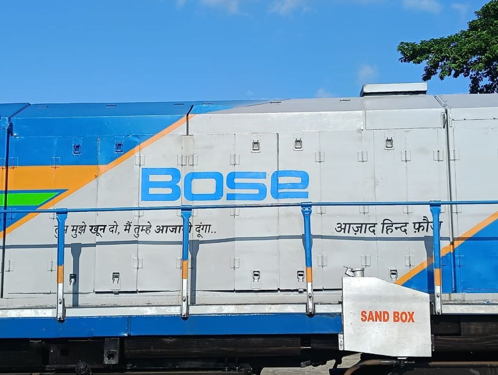 The WDP-4B diesel locomotive (No. 40023), a 4,500 horsepower engine equipped with advanced IGBT technology, has been given a new livery inspired by the tricolour and national flag motifs. The locomotive now serves as a moving emblem of patriotic pride and a tribute to the sacrifices made by Netaji and his INA.