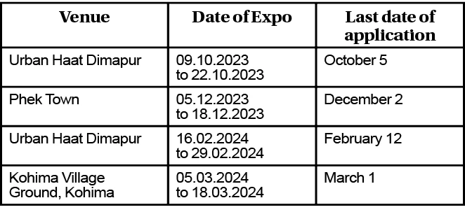 All stall will be provided free of cost with lumpsum TA/DA while freight charges will be re-imbursed as per prescribed rates of NHDP guidelines, informed a press release from Vitsutho Nyuthe, NHHDC Managing Director.