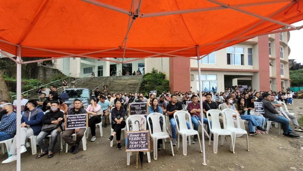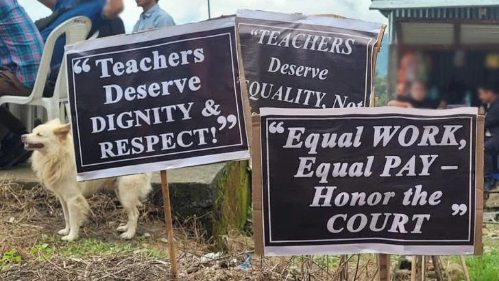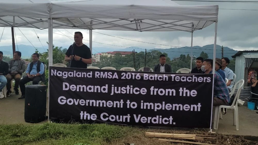 The Nagaland RMSA Teachers’ Association 2016 comprising of 367 teachers from 133 Government High Schools across the state converged outside the Directorate of School Education for its indefinite sit-in protest this morning on September 8.